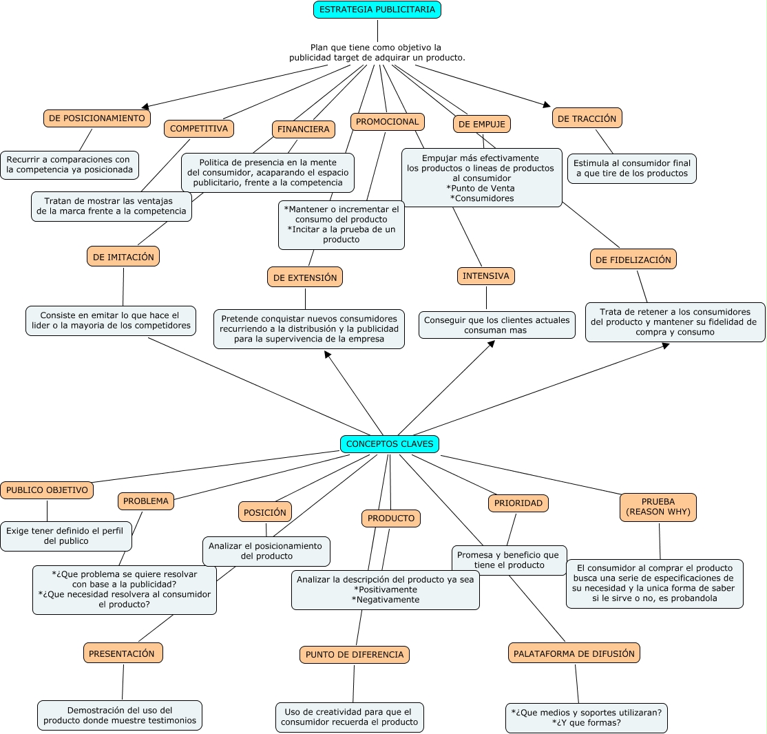 Este Cmap, tiene información relacionada con: ESTRATEGIA PUBLICITARIA MICHAEL PERDOMO, FINANCIERA ???? Politica de presencia en la mente del consumidor, acaparando el espacio publicitario, frente a la competencia, ESTRATEGIA PUBLICITARIA Plan que tiene como objetivo la publicidad target de adquirar un producto. DE FIDELIZACIÓN, INTENSIVA ???? Conseguir que los clientes actuales consuman mas, CONCEPTOS CLAVES ???? PRIORIDAD, CONCEPTOS CLAVES ???? PRUEBA (REASON WHY), DE FIDELIZACIÓN ???? Trata de retener a los consumidores del producto y mantener su fidelidad de compra y consumo, Consiste en emitar lo que hace el lider o la mayoria de los competidores ???? Pretende conquistar nuevos consumidores recurriendo a la distribusión y la publicidad para la supervivencia de la empresa, DE EMPUJE ???? Empujar más efectivamente los productos o lineas de productos al consumidor *Punto de Venta *Consumidores, COMPETITIVA ???? Tratan de mostrar las ventajas de la marca frente a la competencia, PUBLICO OBJETIVO ???? Exige tener definido el perfil del publico, Consiste en emitar lo que hace el lider o la mayoria de los competidores ???? Conseguir que los clientes actuales consuman mas, PRIORIDAD ???? Promesa y beneficio que tiene el producto, ESTRATEGIA PUBLICITARIA Plan que tiene como objetivo la publicidad target de adquirar un producto. INTENSIVA, ESTRATEGIA PUBLICITARIA Plan que tiene como objetivo la publicidad target de adquirar un producto. DE EMPUJE, CONCEPTOS CLAVES ???? PRODUCTO, ESTRATEGIA PUBLICITARIA Plan que tiene como objetivo la publicidad target de adquirar un producto. DE POSICIONAMIENTO, ESTRATEGIA PUBLICITARIA Plan que tiene como objetivo la publicidad target de adquirar un producto. DE EXTENSIÓN, CONCEPTOS CLAVES ???? POSICIÓN, DE POSICIONAMIENTO ???? Recurrir a comparaciones con la competencia ya posicionada, CONCEPTOS CLAVES ???? PALATAFORMA DE DIFUSIÓN