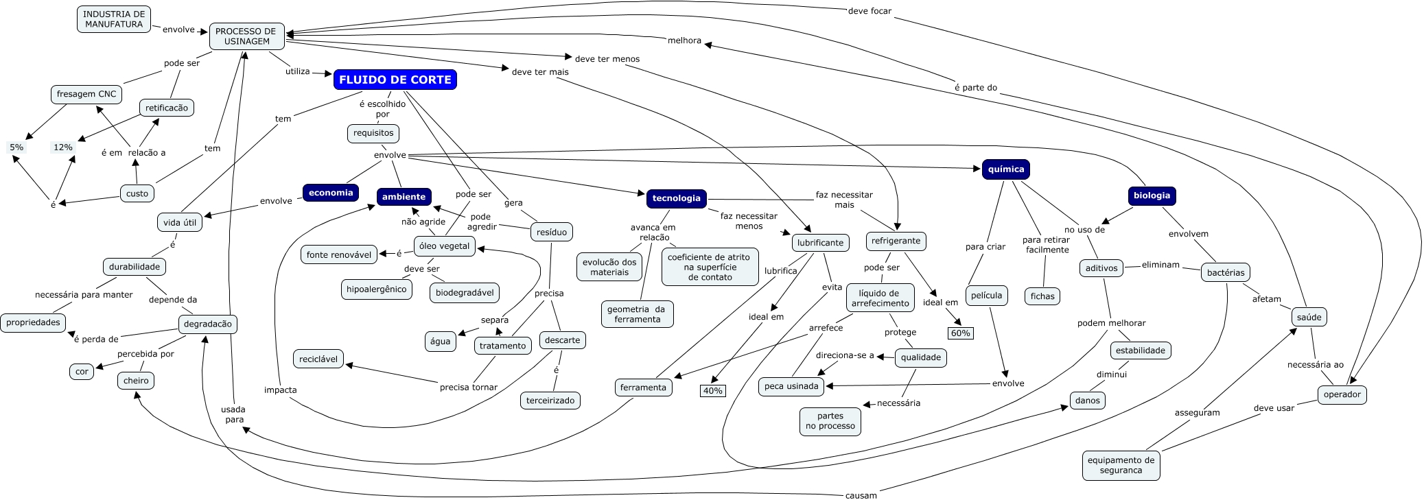 This Concept Map, created with IHMC CmapTools, has information related to: vinicius reformulado, PROCESSO DE USINAGEM deve focar operador, PROCESSO DE USINAGEM pode ser retificacão, saúde melhora PROCESSO DE USINAGEM, INDUSTRIA DE MANUFATURA envolve PROCESSO DE USINAGEM, tecnologia faz necessitar menos lubrificante, tecnologia faz necessitar mais refrigerante, tecnologia avanca em relacão geometria da ferramenta, refrigerante ideal em 60%, película envolve peca usinada, FLUIDO DE CORTE pode ser óleo vegetal, química para retirar facilmente fichas, requisitos envolve biologia, requisitos envolve tecnologia, descarte é terceirizado, química para criar película, líquido de arrefecimento arrefece peca usinada, custo é em relacão a fresagem CNC, PROCESSO DE USINAGEM deve ter menos refrigerante, química no uso de aditivos, PROCESSO DE USINAGEM utiliza FLUIDO DE CORTE