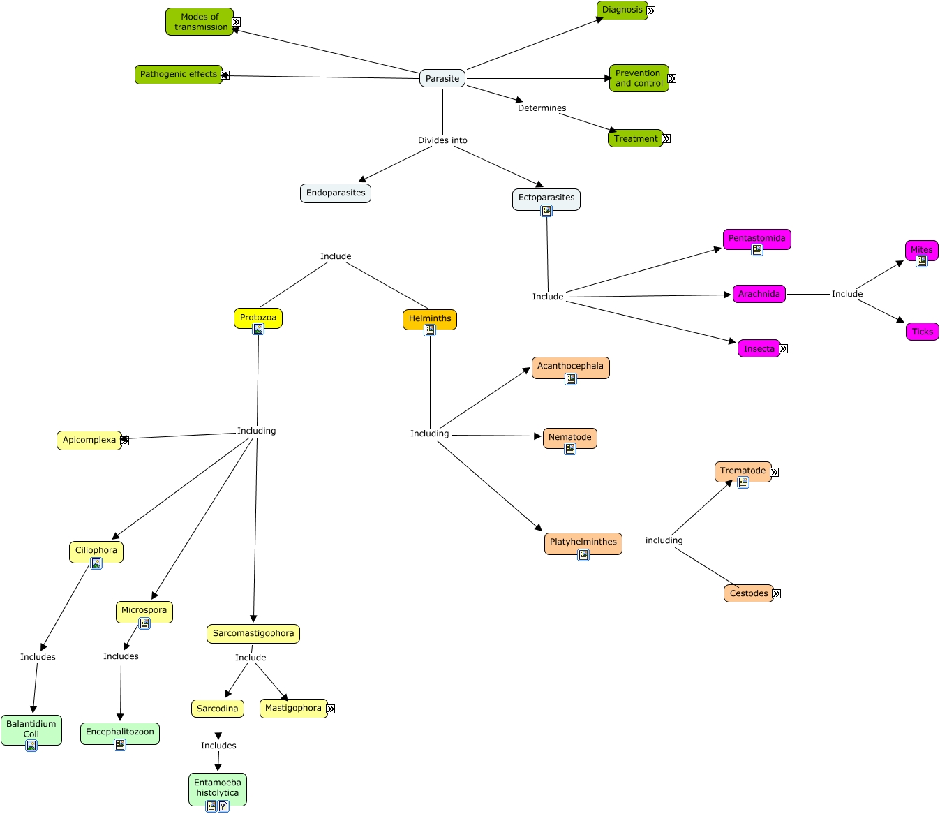 This Concept Map, created with IHMC CmapTools, has information related to: Parasites final, Hemosporidia Includes Hemoproteus, Mastigophora Includes Trichomonas, Cestode includes Pseudophyllidea, Trichomonas Include Trichomonas foetus, Antinematodal Include Tetrahydropyrimidines, Treatment Includes Surgical, Antiprotozoan Include Drugs effective against Amoebae and Flagellates, Flies Simulium, Ectoparasiticides Include Synthetic pyrethroids, Helminths Including Nematode, Trematode Includes Schistosomatidae, Mosquitoes Culex, Antinematodal Include Probenzimidazole, Trematode Includes Paramphistomatidae, Parasite Modes of transmission Through Skin, Pseudophyllidea Includes Diphyllobothrium spp., Cestode includes Cyclophyllidea, Coccidia Includes Cryptosporidium, Diagnosis Skin, Antitrematodal Include Newer salicylanilides
