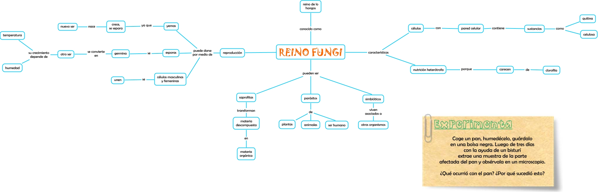 Este Cmap, tiene información relacionada con: Reino fungi, células con pared celular, saprofitas transforman materia descompuesta, sustancias como quitina, otro ser su crecimiento depende de humedad, reproducción puede darse por medio de esporas, simbióticos viven asociados a otros organismos, REINO FUNGI pueden ser parásitos, nutrición heterótrofa porque carecen, parásitos de ser humano, REINO FUNGI conocido como reino de lo hongos, REINO FUNGI características nutrición heterótrofa, materia descompuesta en materia orgánica, reproducción puede darse por medio de células masculinas y femeninas, REINO FUNGI características células, parásitos de plantas, REINO FUNGI pueden ser saprofitas, pared celular contiene sustancias, REINO FUNGI pueden ser simbióticos, reproducción puede darse por medio de yemas, sustancias como celulosa