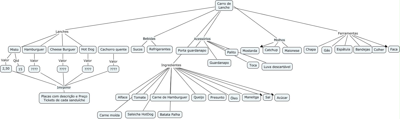 Esse mapa conceitual, produzido no IHMC CmapTools, tem a informação relacionada a: Carro de Lanche, Carro de Lanche Molhos Maionese, Carro de Lanche Ingredientes Sal, Carro de Lanche Ingredientes Maneitga, Carro de Lanche Lanches Hamburguer, Carro de Lanche Ingredientes Acúcar, ???? Imrpimir Placas com descrição e Preço Tickets de cada sanduíche, ???? Imrpimir Placas com descrição e Preço Tickets de cada sanduíche, Carro de Lanche Ferramentas Gás, Carro de Lanche Ingredientes Alface, Carro de Lanche Lanches Misto, Carro de Lanche Bebidas Sucos, Carro de Lanche Acessórios Porta guardanapo, Carro de Lanche Ingredientes Presunto, Carro de Lanche Ingredientes Batata Palha, Carro de Lanche Ferramentas Bandejas, Carro de Lanche Lanches Hot Dog, Carro de Lanche Molhos Mostarda, Carro de Lanche Ingredientes Salsicha HotDog, Cachorro quente Valor ????, Misto Valor 2,50