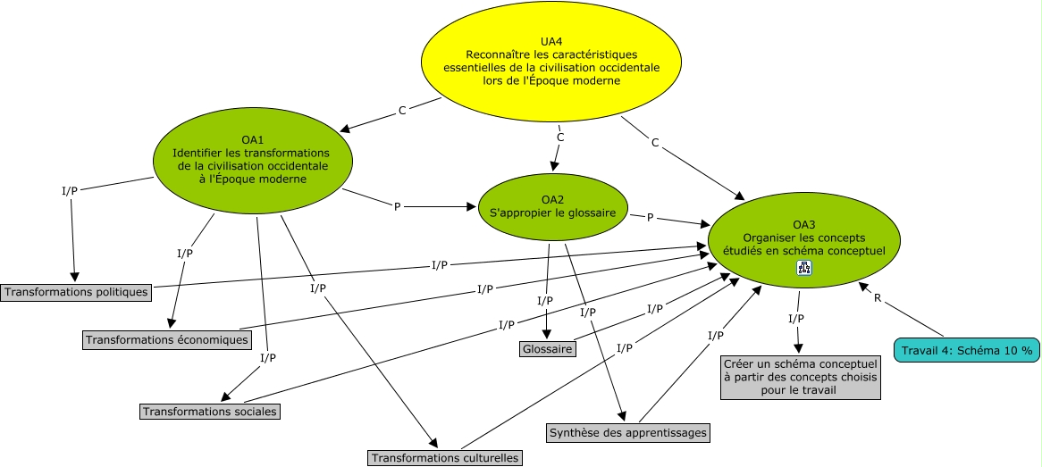 Cette carte de concepts créée avec IHMC CmapTools traite de: UA4, Transformations politiques I/P OA3 Organiser les concepts étudiés en schéma conceptuel, OA3 Organiser les concepts étudiés en schéma conceptuel I/P Créer un schéma conceptuel à partir des concepts choisis pour le travail, OA1 Identifier les transformations de la civilisation occidentale à l'Époque moderne I/P Transformations économiques, Transformations économiques I/P OA3 Organiser les concepts étudiés en schéma conceptuel, OA1 Identifier les transformations de la civilisation occidentale à l'Époque moderne I/P Transformations sociales, OA2 S'appropier le glossaire I/P Glossaire, UA4 Reconnaître les caractéristiques essentielles de la civilisation occidentale lors de l'Époque moderne C OA1 Identifier les transformations de la civilisation occidentale à l'Époque moderne, UA4 Reconnaître les caractéristiques essentielles de la civilisation occidentale lors de l'Époque moderne C OA2 S'appropier le glossaire, Synthèse des apprentissages I/P OA3 Organiser les concepts étudiés en schéma conceptuel, OA1 Identifier les transformations de la civilisation occidentale à l'Époque moderne I/P Transformations culturelles, Transformations sociales I/P OA3 Organiser les concepts étudiés en schéma conceptuel, OA1 Identifier les transformations de la civilisation occidentale à l'Époque moderne I/P Transformations politiques, Glossaire I/P OA3 Organiser les concepts étudiés en schéma conceptuel, OA2 S'appropier le glossaire P OA3 Organiser les concepts étudiés en schéma conceptuel, UA4 Reconnaître les caractéristiques essentielles de la civilisation occidentale lors de l'Époque moderne C OA3 Organiser les concepts étudiés en schéma conceptuel, Transformations culturelles I/P OA3 Organiser les concepts étudiés en schéma conceptuel, OA1 Identifier les transformations de la civilisation occidentale à l'Époque moderne P OA2 S'appropier le glossaire, OA2 S'appropier le glossaire I/P Synthèse des apprentissages