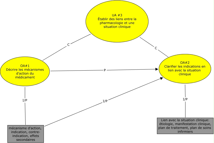 Cette carte de concepts créée avec IHMC CmapTools traite de: UA3, UA #3 Établir des liens entre la pharmacologie et une situation clinique C OA#1 Décrire les mécanismes d'action du médicament, mécanisme d'action, indication, contre- indication, effets secondaires I/P OA#2 Clarifier les indications en lien avec la situation clinique, UA #3 Établir des liens entre la pharmacologie et une situation clinique C OA#2 Clarifier les indications en lien avec la situation clinique, OA#2 Clarifier les indications en lien avec la situation clinique I/P Lien avec la situation clinique: étiologie, manifestation clinique, plan de traitement, plan de soins infirmiers, OA#1 Décrire les mécanismes d'action du médicament I/P mécanisme d'action, indication, contre- indication, effets secondaires, OA#1 Décrire les mécanismes d'action du médicament P OA#2 Clarifier les indications en lien avec la situation clinique