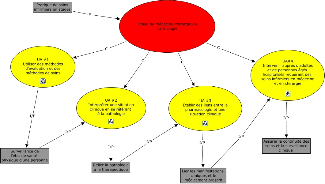 Cette carte de concepts créée avec IHMC CmapTools traite de: SA, Stage de médecine-chirurgie en cardiologie C UA #3 Établir des liens entre la pharmacologie et une situation clinique, Relier la pathologie à la thérapeutique I/P UA #3 Établir des liens entre la pharmacologie et une situation clinique, Stage de médecine-chirurgie en cardiologie C UA#4 Intervenir auprès d'adultes et de personnes âgés hospitalisés requérant des soins infirmiers en médecine et en chirurgie, UA#4 Intervenir auprès d'adultes et de personnes âgés hospitalisés requérant des soins infirmiers en médecine et en chirurgie I/P Assurer la continuité des soins et la surveillance clinique, Lier les manifestations cliniques et le médicament prescrit I/P UA#4 Intervenir auprès d'adultes et de personnes âgés hospitalisés requérant des soins infirmiers en médecine et en chirurgie, Stage de médecine-chirurgie en cardiologie C UA #2 Interpréter une situation clinique en se référant à la pathologie, UA #3 Établir des liens entre la pharmacologie et une situation clinique I/P Lier les manifestations cliniques et le médicament prescrit, Surveillance de l'état de santé physique d'une personne I/P UA #2 Interpréter une situation clinique en se référant à la pathologie, Pratique de soins infirmiers en stages P Stage de médecine-chirurgie en cardiologie, UA #1 Utiliser des méthodes d'évaluation et des méthodes de soins I/P Surveillance de l'état de santé physique d'une personne, Stage de médecine-chirurgie en cardiologie C UA #1 Utiliser des méthodes d'évaluation et des méthodes de soins, UA #2 Interpréter une situation clinique en se référant à la pathologie I/P Relier la pathologie à la thérapeutique