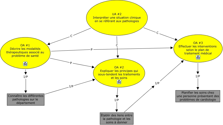 Cette carte de concepts créée avec IHMC CmapTools traite de: UA2, OA #1 Décrire les modalités thérapeutiques associé au problème de santé P OA #3 Effectuer les interventions selon le plan de traitement médical, UA #2 Interpréter une situation clinique en se référant aux pathologies C OA #1 Décrire les modalités thérapeutiques associé au problème de santé, OA #3 Effectuer les interventions selon le plan de traitement médical I/P Planifier les soins chez une personne présentant des problèmes de cardiologie, OA #2 Expliquer les principes qui sous-tendent les traitements et les soins I/P Établir des liens entre la pathologie et les soins à donner, OA #1 Décrire les modalités thérapeutiques associé au problème de santé I/P Connaître les différentes pathologies sur le département, UA #2 Interpréter une situation clinique en se référant aux pathologies C OA #3 Effectuer les interventions selon le plan de traitement médical, OA #1 Décrire les modalités thérapeutiques associé au problème de santé P OA #2 Expliquer les principes qui sous-tendent les traitements et les soins, UA #2 Interpréter une situation clinique en se référant aux pathologies C OA #2 Expliquer les principes qui sous-tendent les traitements et les soins, Établir des liens entre la pathologie et les soins à donner I/P OA #3 Effectuer les interventions selon le plan de traitement médical, Connaître les différentes pathologies sur le département I/P OA #2 Expliquer les principes qui sous-tendent les traitements et les soins