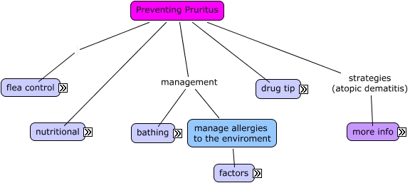 This Concept Map, created with IHMC CmapTools, has information related to: pruritis management, Royal Canin (most likely for T&T) how to change diet & general info link, has no- meat by-products (fillers) preservatives artificial flavoring artificial coloring examples #1 Orijen (award winning ), quality and texture of the animal’s hair what kind of shampoo humans are on the acid side and are therefore unsuitable for dogs., soothing shampoos eg. DermaTopic (Almapharm, Kempten, Germany), a shampoo containing chlorhexidine, lactoferrin, piroctone olamine, chitosan, and essential fatty acids, has no- meat by-products (fillers) preservatives artificial flavoring artificial coloring examples Royal Canin (most likely for T&T), avoid- corn wheat yeast dairy soy examples #2 Acana Dog Food, Environmental Treatment different methods benificial nematodes, strategies to avoid reaccurance of CS (atopic dematitis) include PROACTIVE (PREVENTIVE) PHARMACOTHERAPY, flea control Environmental Treatment, strategies to avoid reaccurance of CS (atopic dematitis) include AVOIDANCE OF FLARE FACTORS, Environmental Treatment different methods sodium polyborate, quality and texture of the animal’s hair what kind of shampoo important to select a shampoo labeled for the animal eg.“for dogs.” The pH of canine skin is neutral (7 to 7.4), Environmental Treatment different methods chemical spraying, flea control ideal treatment Safe, non-toxic, non-irritating Fast knockdown time Long duration of action Active against multiple stages of life cycle, avoid- corn wheat yeast dairy soy examples #3 Flint River Ranch, AVOIDANCE OF FLARE FACTORS this and more link, Preventing Pruritus nutritional manage food allergies, manage allergies to the enviroment factors outdoor, strategies to avoid reaccurance of CS (atopic dematitis) include ALLERGEN-SPECIFIC IMMUNOTHERAPY, Preventing Pruritus management manage allergies to the enviroment