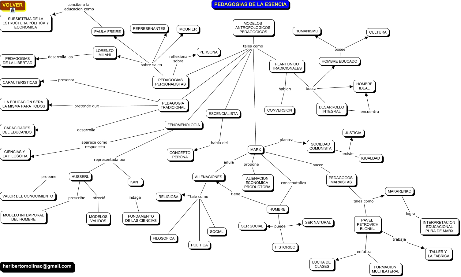 Este Cmap, tiene información relacionada con: CAP5, MARX anula ALIENACIONES, FENOMENOLOGIA representada por KANT, DESARROLLO INTEGRAL encuentra HOMBRE IDEAL, PAVEL PETROVICH BLONKIJ enfatiza FORMACION MULTILATERAL, MODELOS ANTROPOLOGICOS PEDAGOGICOS tales como PLANTONICO TRADICIONALES, MODELOS ANTROPOLOGICOS PEDAGOGICOS tales como PEDAGOGIAS PERSONALISTAS, MARX propone ALIENACION ECONOMICA PRODUCTORA, PEDAGOGIAS PERSONALISTAS reflexiona sobre PERSONA, PAVEL PETROVICH BLONKIJ enfatiza LUCHA DE CLASES, PLANTONICO TRADICIONALES hablan CONVERSION, ALIENACIONES tale como RELIGIOSA, SOCIEDAD COMUNISTA existe IGUALDAD, PLANTONICO TRADICIONALES busca HOMBRE IDEAL, PEDAGOGIAS PERSONALISTAS sobre salen PAULA FREIRE, PAVEL PETROVICH BLONKIJ trabaja TALLER Y LA FABRICA, PLANTONICO TRADICIONALES busca DESARROLLO INTEGRAL, PAULA FREIRE concibe a la educacion como SUBSISTEMA DE LA ESTRUCTURA POLITICA Y ECONOMICA, ALIENACIONES tale como SOCIAL, PEDAGOGOS MARXISTAS tales como PAVEL PETROVICH BLONKIJ, ALIENACIONES tale como POLITICA