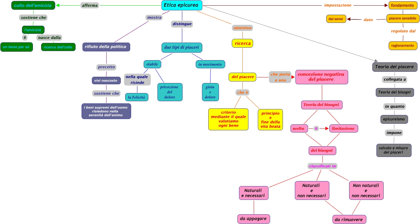 Questa Cmap, creata con IHMC CmapTools, contiene informazioni relative a: ETICA, piacere sensibile dato dai sensi, limitazione dei bisogni, scelta dei bisogni, Naturali e necessari da appagare, Naturali e non necessari da rimuovere, Etica epicurea obiettivo ricerca, Etica epicurea impostazione fondamento, piacere sensibile dato dai sensi, ricerca del piacere, del piacere che è principio e fine della vita beata, stabile privazione del dolore, rifiuto della politica precetto vivi nascosto, Etica epicurea mostra rifiuto della politica, culto dell'amicizia sostiene che l'amicizia, dei bisogni classificati in Naturali e necessari, vivi nascosto sostiene che i beni supremi dell'uomo risiedono nella serenità dell'animo, l'amicizia nasce dalla ricerca dell'utile, Non naturali e non necessari da rimuovere, stabile nella quale risiede la Felicità, Teoria dei bisogni limitazione
