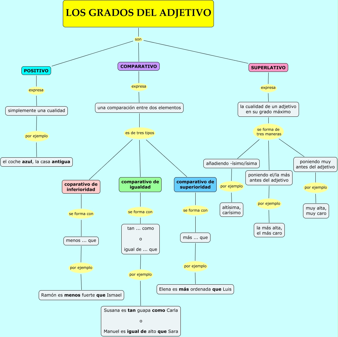 Este Cmap, tiene información relacionada con: Los grados del adjetivo