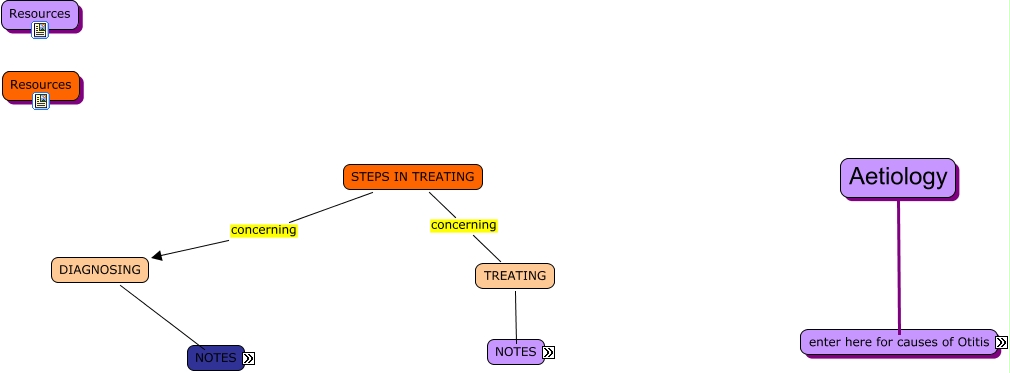 This Concept Map, created with IHMC CmapTools, has information related to: Otitis aetiology, Treating primary causes CONCERNING, DIAGNOSING Looking at Identifying primary cause, Media Interna, Interna Ruptured Tympanic Membrane, Predisposing Factors Include, Aetiology ???? Externa, Externa Perpetuating, Aetiology Aetiology, DIAGNOSING Looking at Cytological evaluation of otic exudate, Perpetuating ???? Factors Include, Aetiology Interna, DIAGNOSING Looking at Examining the skin and ears, General distance and physical exam Looking at Identifying primary cause, The following supplies: ear wash solution cotton balls a tweezers or hemostat to pluck hair q tips may be used if used properly Steps to flushing ear and ear wash solutions, Treating secondary problems CONCERNING, CONCERNING DRUGS, Primary ???? Factors Include, Flush ears The following supplies: ear wash solution cotton balls a tweezers or hemostat to pluck hair q tips may be used if used properly, Externa Predisposing, Externa ???? Primary