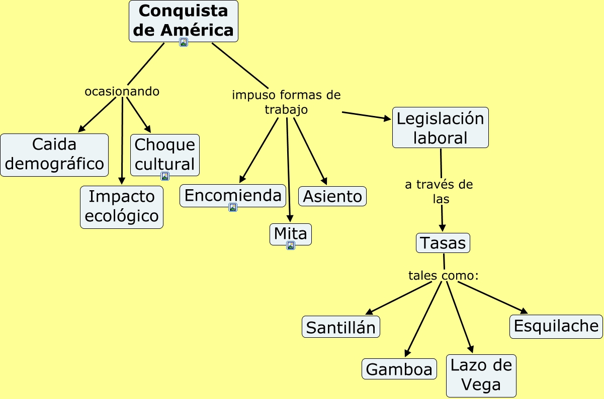 Este Cmap, tiene información relacionada con: Conquista de América, Tasas tales como: Lazo de Vega, Conquista de América impuso formas de trabajo Encomienda, Conquista de América impuso formas de trabajo Asiento, Conquista de América ocasionando Impacto ecológico, Tasas tales como: Esquilache, Tasas tales como: Gamboa, Conquista de América impuso formas de trabajo Legislación laboral, Conquista de América ocasionando Caida demográfico, Tasas tales como: Santillán, Legislación laboral a través de las Tasas, Conquista de América impuso formas de trabajo Mita, Conquista de América ocasionando Choque cultural