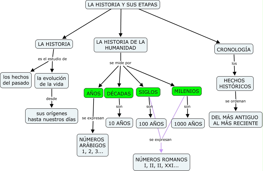 Este Cmap, tiene información relacionada con: PRESENTACION TEMA 5, LA HISTORIA DE LA HUMANIDAD se mide por SIGLOS, LA HISTORIA es el estudio de los hechos del pasado, AÑOS se expresan NÚMEROS ARÁBIGOS 1, 2, 3..., LA HISTORIA Y SUS ETAPAS ???? LA HISTORIA, LA HISTORIA es el estudio de la evolución de la vida, MILENIOS se expresan NÚMEROS ROMANOS I, II, II, XXI..., LA HISTORIA Y SUS ETAPAS ???? CRONOLOGÍA, CRONOLOGÍA los HECHOS HISTÓRICOS, la evolución de la vida desde sus orígenes hasta nuestros días, LA HISTORIA DE LA HUMANIDAD se mide por DÉCADAS, LA HISTORIA DE LA HUMANIDAD se mide por AÑOS, DÉCADAS son 10 AÑOS, MILENIOS son 1000 AÑOS, HECHOS HISTÓRICOS se ordenan DEL MÁS ANTIGUO AL MÁS RECIENTE, SIGLOS se expresan NÚMEROS ROMANOS I, II, II, XXI..., SIGLOS son 100 AÑOS, LA HISTORIA DE LA HUMANIDAD se mide por MILENIOS, LA HISTORIA Y SUS ETAPAS ???? LA HISTORIA DE LA HUMANIDAD