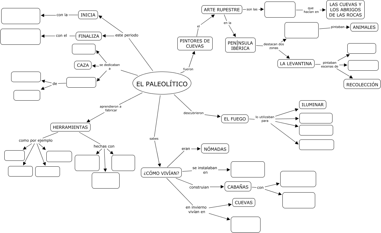 Este Cmap, tiene información relacionada con: PALEOLÍTICO COMPLETAR, ARTE RUPESTRE en la PENÍNSULA IBÉRICA, EL PALEOLÍTICO se dedicaban a CAZA, EL PALEOLÍTICO aprendieron a fabricar HERRAMIENTAS, EL PALEOLÍTICO se dedicaban a, HERRAMIENTAS hechas con, EL PALEOLÍTICO se dedicaban a, de, que hacían en LAS CUEVAS Y LOS ABRIGOS DE LAS ROCAS, ¿CÓMO VIVÍAN? en invierno vivían en, EL PALEOLÍTICO descubrieron EL FUEGO, LA LEVANTINA pintaban escenas de RECOLECCIÓN, ¿CÓMO VIVÍAN? eran NÓMADAS, HERRAMIENTAS como por ejemplo, ¿CÓMO VIVÍAN? en invierno vivían en CUEVAS, CABAÑAS con, pintaban ANIMALES, LA LEVANTINA pintaban escenas de, HERRAMIENTAS hechas con, FINALIZA con el, ¿CÓMO VIVÍAN? construian CABAÑAS