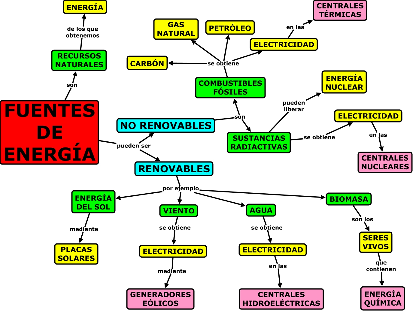 Este Cmap, tiene información relacionada con: fuentes de energía, SUSTANCIAS RADIACTIVAS pueden liberar ENERG�?A NUCLEAR, ENERG�?A DEL SOL mediante PLACAS SOLARES, COMBUSTIBLES FÓSILES se obtiene GAS NATURAL, BIOMASA son los SERES VIVOS, FUENTES DE ENERG�?A pueden ser RENOVABLES, RENOVABLES por ejemplo BIOMASA, ELECTRICIDAD en las CENTRALES NUCLEARES, AGUA se obtiene ELECTRICIDAD, VIENTO se obtiene ELECTRICIDAD, COMBUSTIBLES FÓSILES se obtiene PETRÓLEO, COMBUSTIBLES FÓSILES se obtiene ELECTRICIDAD, COMBUSTIBLES FÓSILES se obtiene CARBÓN, ELECTRICIDAD en las CENTRALES HIDROELÉCTRICAS, NO RENOVABLES son SUSTANCIAS RADIACTIVAS, SUSTANCIAS RADIACTIVAS se obtiene ELECTRICIDAD, SERES VIVOS que contienen ENERG�?A QU�?MICA, RENOVABLES por ejemplo ENERG�?A DEL SOL, ELECTRICIDAD en las CENTRALES TÉRMICAS, RECURSOS NATURALES de los que obtenemos ENERG�?A, ELECTRICIDAD mediante GENERADORES EÓLICOS