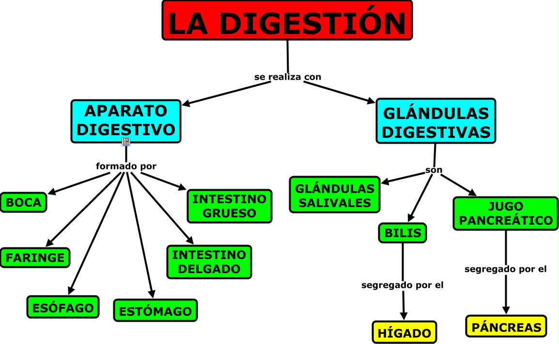 Este Cmap, tiene información relacionada con: digestion, APARATO DIGESTIVO formado por ESÓFAGO, APARATO DIGESTIVO formado por ESTÓMAGO, APARATO DIGESTIVO formado por INTESTINO DELGADO, LA DIGESTIÓN se realiza con GL�?NDULAS DIGESTIVAS, GL�?NDULAS DIGESTIVAS son GL�?NDULAS SALIVALES, APARATO DIGESTIVO formado por FARINGE, GL�?NDULAS DIGESTIVAS son JUGO PANCRE�?TICO, APARATO DIGESTIVO formado por INTESTINO GRUESO, GL�?NDULAS DIGESTIVAS son BILIS, JUGO PANCRE�?TICO segregado por el P�?NCREAS, APARATO DIGESTIVO formado por BOCA, BILIS segregado por el H�?GADO, LA DIGESTIÓN se realiza con APARATO DIGESTIVO