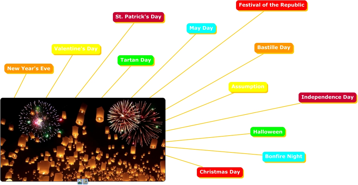 Questa Cmap, creata con IHMC CmapTools, contiene informazioni relative a: WFestivals, ???? ???? Festival of the Republic, ???? ???? Halloween, ???? ???? St. Patrick's Day, ???? ???? Independence Day, ???? ???? Bonfire Night, ???? ???? Christmas Day, ???? ???? New Year's Eve, ???? ???? Valentine's Day, ???? ???? Assumption, ???? ???? May Day, ???? ???? Bastille Day, ???? ???? Tartan Day