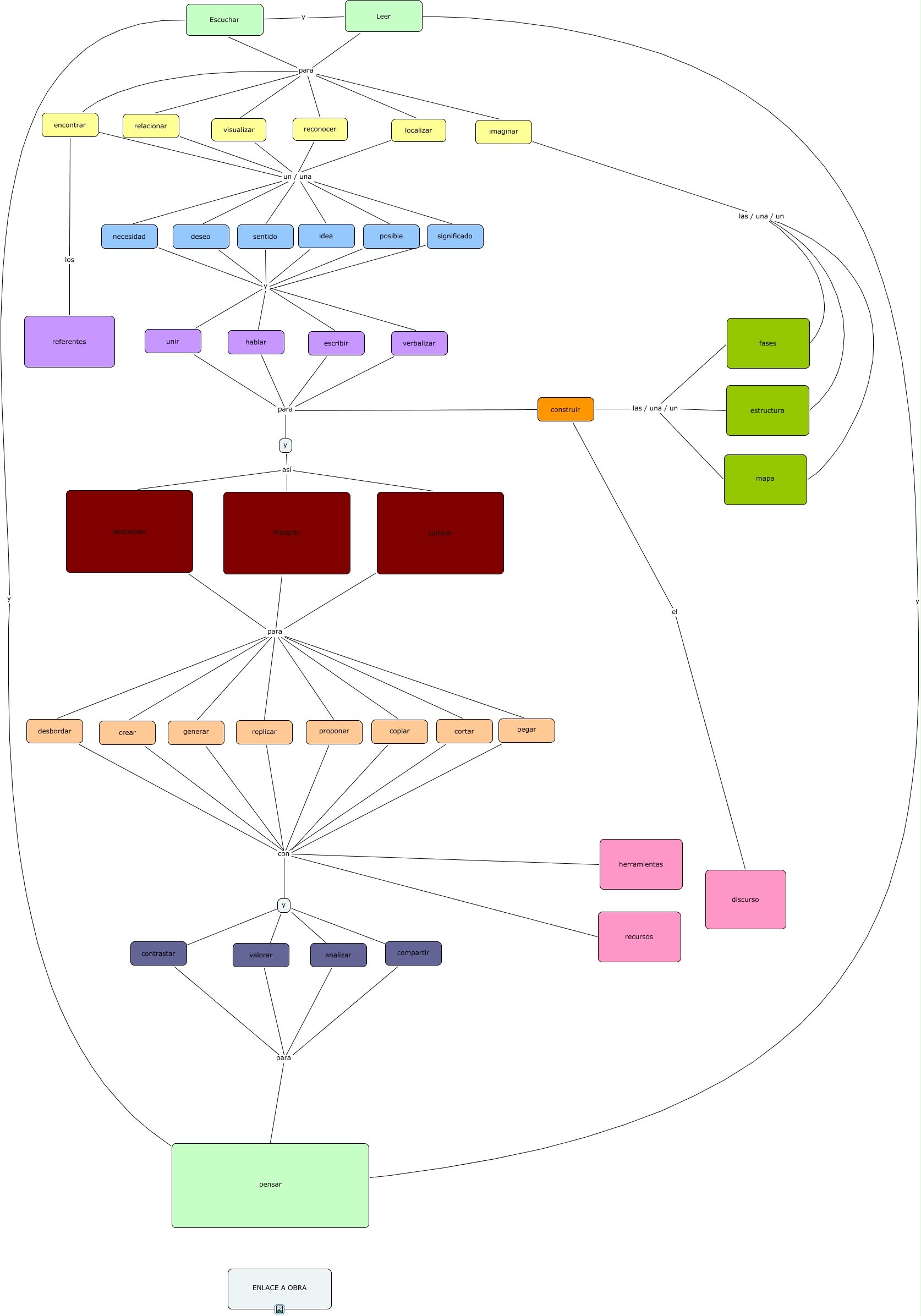 Este Cmap, tiene información relacionada con: Como proyecto, descansar para proponer, cortar con y, integrar para generar, encontrar un / una deseo, Escuchar para encontrar, deseo y hablar, desbordar con herramientas, idea y hablar, significado y hablar, Leer para visualizar, desbordar con recursos, escribir para construir, generar con herramientas, y ???? compartir, necesidad y escribir, encontrar los referentes, visualizar un / una posible, localizar un / una deseo, localizar un / una significado, sentido y escribir