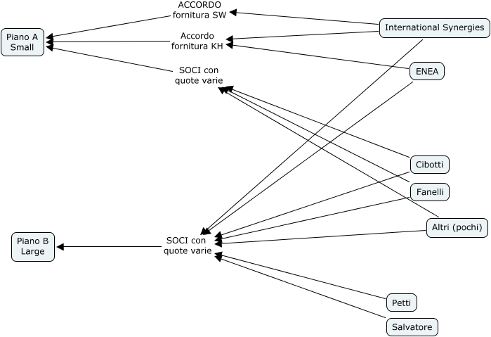 Questa Cmap, creata con IHMC CmapTools, contiene informazioni relative a: Brainstorming, International Synergies SOCI con quote varie Piano B Large, Cibotti SOCI con quote varie Piano B Large, Fanelli SOCI con quote varie Piano A Small, Fanelli SOCI con quote varie Piano B Large, Altri (pochi) SOCI con quote varie Piano B Large, Altri (pochi) SOCI con quote varie Piano A Small, Salvatore SOCI con quote varie Piano B Large, International Synergies Accordo fornitura KH Piano A Small, International Synergies ACCORDO fornitura SW Piano A Small, ENEA SOCI con quote varie Piano B Large, Petti SOCI con quote varie Piano B Large, ENEA Accordo fornitura KH Piano A Small, Cibotti SOCI con quote varie Piano A Small