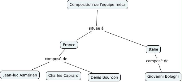 Cette carte de concepts créée avec IHMC CmapTools traite de: Equipe socket, Italie composé de Giovanni Bologni, France composé de Jean-luc Asmérian, France composé de Denis Bourdon, Composition de l'équipe méca située à France, Composition de l'équipe méca située à Italie