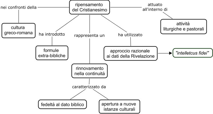 Questa Cmap, creata con IHMC CmapTools, contiene informazioni relative a: Metodo 08, ripensamento del Cristianesimo nei confronti della cultura greco-romana, ripensamento del Cristianesimo rappresenta un rinnovamento nella continuità, rinnovamento nella continuità caratterizzato da apertura a nuove istanze culturali, ripensamento del Cristianesimo ha introdotto formule extra-bibliche, ripensamento del Cristianesimo attuato all'interno di attività liturgiche e pastorali, rinnovamento nella continuità caratterizzato da fedeltà al dato biblico, approccio razionale ai dati della Rivelazione "intelletcus fidei", ripensamento del Cristianesimo ha utilizzato approccio razionale ai dati della Rivelazione