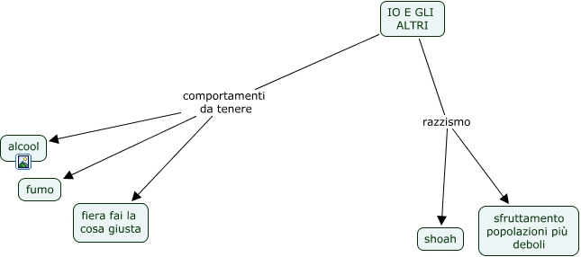 Questa Cmap, creata con IHMC CmapTools, contiene informazioni relative a: io e gli altri gianluca, IO E GLI ALTRI comportamenti da tenere fiera fai la cosa giusta, IO E GLI ALTRI comportamenti da tenere fumo, IO E GLI ALTRI razzismo shoah, IO E GLI ALTRI razzismo sfruttamento popolazioni più deboli, IO E GLI ALTRI comportamenti da tenere alcool