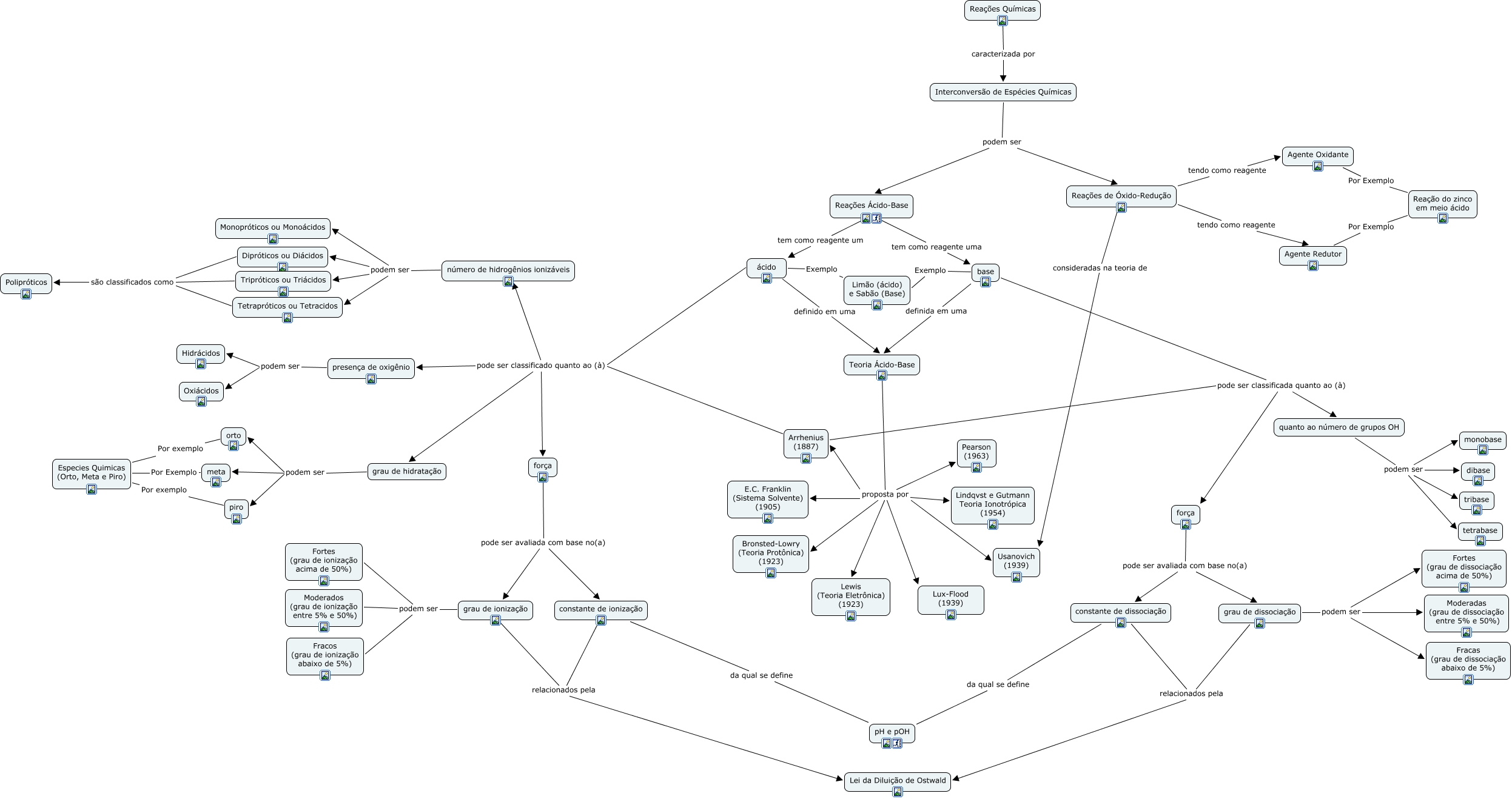 Esse mapa conceitual, produzido no IHMC CmapTools, tem a informação relacionada a: Ácidos e Bases, quanto ao número de grupos OH podem ser dibase, Reações Ácido-Base tem como reagente um ácido, força pode ser avaliada com base no(a) grau de ionização, base definida em uma Teoria Ácido-Base, Teoria Ácido-Base proposta por Lux-Flood (1939), número de hidrogênios ionizáveis podem ser Monopróticos ou Monoácidos, constante de dissociação relacionados pela Lei da Diluição de Ostwald, base pode ser classificada quanto ao (à) força, orto Por exemplo Especies Quimicas (Orto, Meta e Piro), número de hidrogênios ionizáveis podem ser Tripróticos ou Triácidos, Tripróticos ou Triácidos são classificados como Polipróticos, grau de hidratação podem ser meta, número de hidrogênios ionizáveis podem ser Tetrapróticos ou Tetracidos, Reações de Óxido-Redução consideradas na teoria de Usanovich (1939), ácido pode ser classificado quanto ao (à) grau de hidratação, grau de hidratação podem ser piro, Reações Químicas caracterizada por Interconversão de Espécies Químicas, grau de dissociação podem ser Fracas (grau de dissociação abaixo de 5%), base pode ser classificada quanto ao (à) quanto ao número de grupos OH, Agente Redutor Por Exemplo Reação do zinco em meio ácido