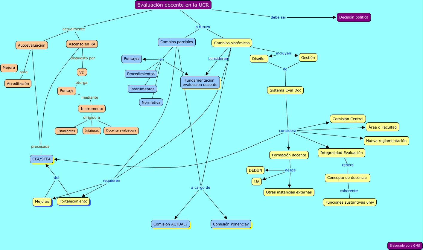 Este Cmap, tiene información relacionada con: Evaluación docente, Autoevaluación para Mejora, Autoevaluación procesada CEA/STEA, Cambios parciales requieren Mejoras, Cambios parciales requieren Fortalecimiento, Cambios parciales en Puntajes, Puntaje mediante Instrumento, Diseño de Sistema Eval Doc, Cambios parciales en Procedimientos, Ascenso en RA dispuesto por VD, Cambios sistémicos a cargo de Comisión ACTUAL?, Mejoras del CEA/STEA, Evaluación docente en la UCR debe ser Decisión política, Cambios parciales en Normativa, Instrumento dirigido a Jefaturas, Cambios parciales a cargo de Comisión ACTUAL?, Ascenso en RA procesada CEA/STEA, Cambios parciales en Fundamentación evaluacion docente, VD otorga Puntaje, Evaluación docente en la UCR a futuro Cambios sistémicos, Fortalecimiento del CEA/STEA