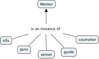 This Concept Map, created with IHMC CmapTools, has information related to: mentor, sifu is an instance of Mentor, counselor is an instance of Mentor, guru is an instance of Mentor, guide is an instance of Mentor, sensei is an instance of Mentor