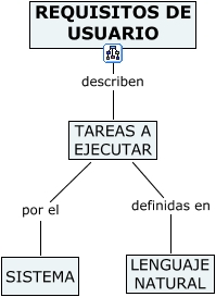 Este Cmap, tiene información relacionada con: USUARIO, REQUISITOS DE USUARIO describen TAREAS A EJECUTAR, TAREAS A EJECUTAR por el SISTEMA, TAREAS A EJECUTAR definidas en LENGUAJE NATURAL