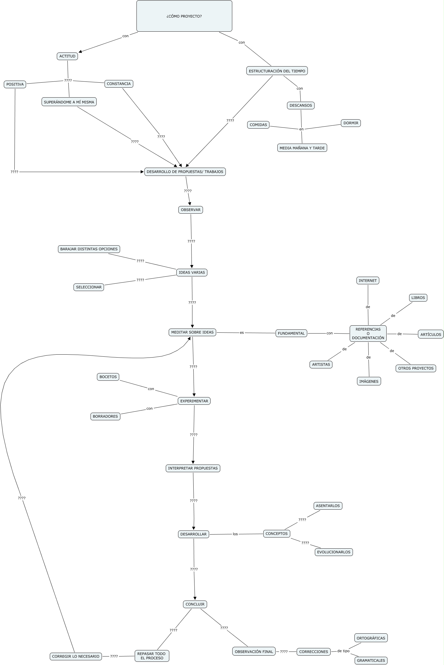 Este Cmap, tiene información relacionada con: Vega Martín, Esther. Cómo proyecto, OBSERVAR ???? IDEAS VARIAS, DESARROLLO DE PROPUESTAS/ TRABAJOS ???? OBSERVAR, MEDITAR SOBRE IDEAS ???? EXPERIMENTAR, CONCEPTOS ???? ASENTARLOS, ESTRUCTURACIÓN DEL TIEMPO ???? DESARROLLO DE PROPUESTAS/ TRABAJOS, REFERENCIAS O DOCUMENTACIÓN de OTROS PROYECTOS, EXPERIMENTAR ???? INTERPRETAR PROPUESTAS, CORRECCIONES de tipo GRAMATICALES, DESCANSOS en MEDIA MAÑANA Y TARDE, REPASAR TODO EL PROCESO ???? CORREGIR LO NECESARIO, EXPERIMENTAR con BORRADORES, REFERENCIAS O DOCUMENTACIÓN de INTERNET, ACTITUD ???? POSITIVA, ¿CÓMO PROYECTO? con ACTITUD, CONCLUIR ???? OBSERVACIÓN FINAL, CORRECCIONES de tipo ORTOGRÁFICAS, ACTITUD ???? SUPERÁNDOME A MÍ MISMA, IDEAS VARIAS ???? SELECCIONAR, SUPERÁNDOME A MÍ MISMA ???? DESARROLLO DE PROPUESTAS/ TRABAJOS, DESCANSOS en COMIDAS