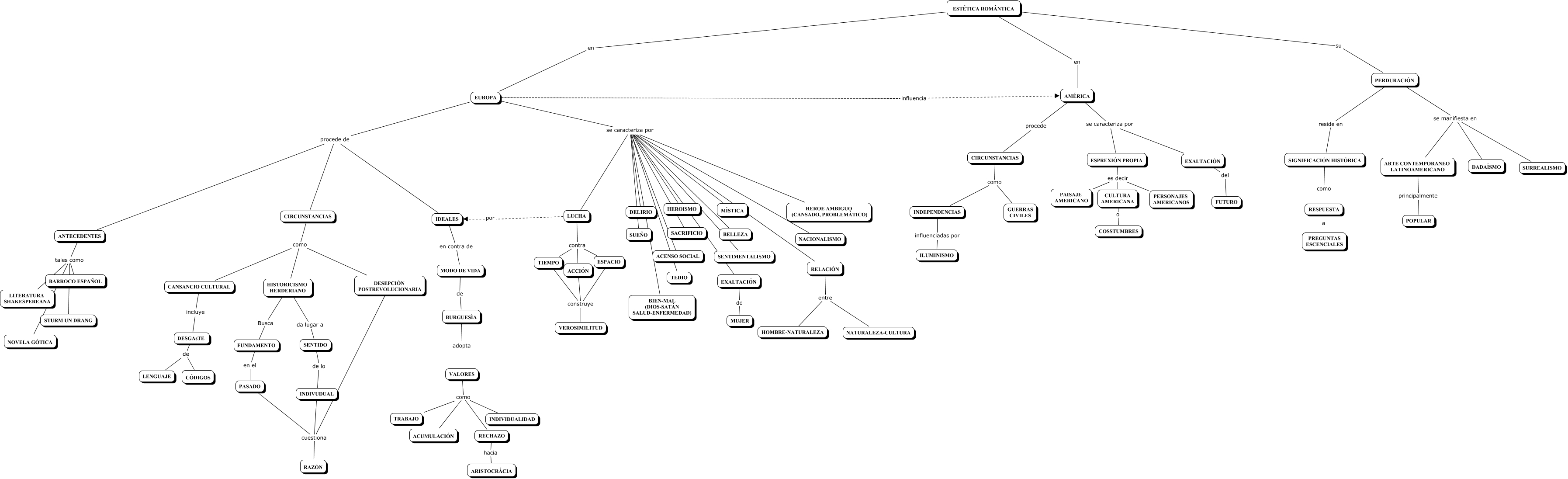 Este Cmap, tiene información relacionada con: Estética Romántica, ARTE CONTEMPORANEO LATINOAMERICANO principalmente POPULAR, EUROPA se caracteriza por SENTIMENTALISMO, TIEMPO construye VEROSIMILITUD, LUCHA por IDEALES, CANSANCIO CULTURAL incluye DESGAsTE, MODO DE VIDA de BURGUESÍA, PASADO cuestiona RAZÓN, ESPREXIÓN PROPIA es decir PAISAJE AMERICANO, ANTECEDENTES tales como NOVELA GÓTICA, EUROPA se caracteriza por EXALTACIÓN, PERDURACIÓN se manifiesta en SURREALISMO, PERSONAJES AMERICANOS es decir PAISAJE AMERICANO, ESTÉTICA ROMÁNTICA en AMÉRICA, EUROPA se caracteriza por LUCHA, DESEPCIÓN POSTREVOLUCIONARIA cuestiona RAZÓN, ESTÉTICA ROMÁNTICA en EUROPA, SENTIDO de lo INDIVUDUAL, EUROPA se caracteriza por SUEÑO, ANTECEDENTES tales como STURM UN DRANG, EUROPA procede de IDEALES
