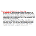 ABCD Format.png Affective - Complex Valuing.jpg Affective - Organization.jpg Affective - Receiving.jpg Affective - Responding.jpg Affective - Valuing.jpg Alternative Assessment.url Authentic Assessment Toolbox.url Bloom's Taxonomy Learning Domains.url Cognitive - Analysis.jpg Cognitive - Application.jpg Cognitive - Comprehension.jpg Cognitive - Evaluation.jpg Cognitive - Knowledge.jpg Cognitive - Synthesis.jpg Common Characteristics of Authentic Assessment.png Conditions of Performance.jpg Creating Meaningful Performance Assessments.pdf Features of Good Performance Assessment.png Mager Format.png Measurable Criterion.jpg Performance Objective Graphic.png Performance Objectives.cmap Performance Objectives.htm Performance Verb.jpg Psychomotor - Articulation.jpg Psychomotor - Imitation.jpg Psychomotor - Manipulation.jpg Psychomotor - Naturalization.jpg Psychomotor - Precision.jpg Sample Lesson Plan for Math.doc Sample Lesson with Objective.pdf Science Rubrics.pdf Science Sample Lesson Plan.pdf Writing Inquiry-Based Objectives.url Writing Inquiry-Oriented Student Performance Objectives.url Writing SMART Performance Objectives.png