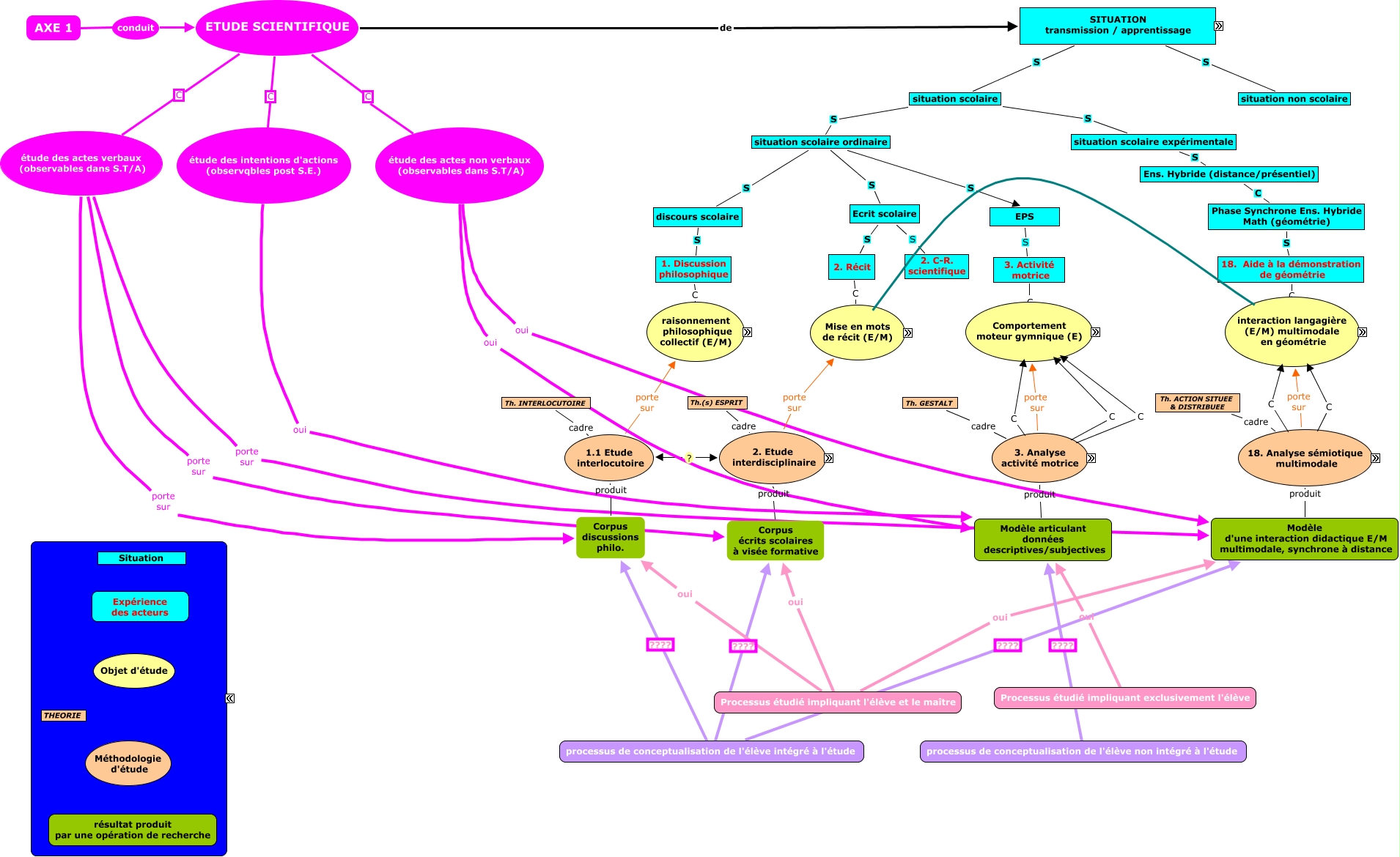 Cette carte de concepts créée avec IHMC CmapTools traite de: Axe 1 V6, Interaction langagière E/M multimodale en géométrie C* acte non verbal, 18. Analyse sémiotique multimodale porte sur interaction langagière (E/M) multimodale en géométrie, EPS S 3. Activité motrice, dispositif oral réflexif en aval de l'écriture régule conceptualisation récit E, agir sur S créer, 3. Analyse activité motrice produit Modèle articulant données descriptives/subjectives, observables visibles I/P transcrire, raisonnement individuel E C* Modalités raisonnement, Processus étudié impliquant l'élève et le maître oui Modèle d'une interaction didactique E/M multimodale, synchrone à distance, agir sur S manipuler, processus de conceptualisation de l'élève intégré à l'étude ???? Corpus discussions philo., 1. Discussion philosophique C raisonnement philosophique collectif (E/M), étude des intentions d'actions (observqbles post S.E.) oui Modèle articulant données descriptives/subjectives, observables visibles C acte non verbal, 1.1 Etude interlocutoire porte sur raisonnement philosophique collectif (E/M), processus de conceptualisation de l'élève intégré à l'étude ???? Modèle d'une interaction didactique E/M multimodale, synchrone à distance, Processus étudié impliquant exclusivement l'élève oui Modèle articulant données descriptives/subjectives, agir sur modalités géom., 2. Etude interdisciplinaire produit Corpus écrits scolaires à visée formative, Processus étudié impliquant l'élève et le maître oui Corpus discussions philo.