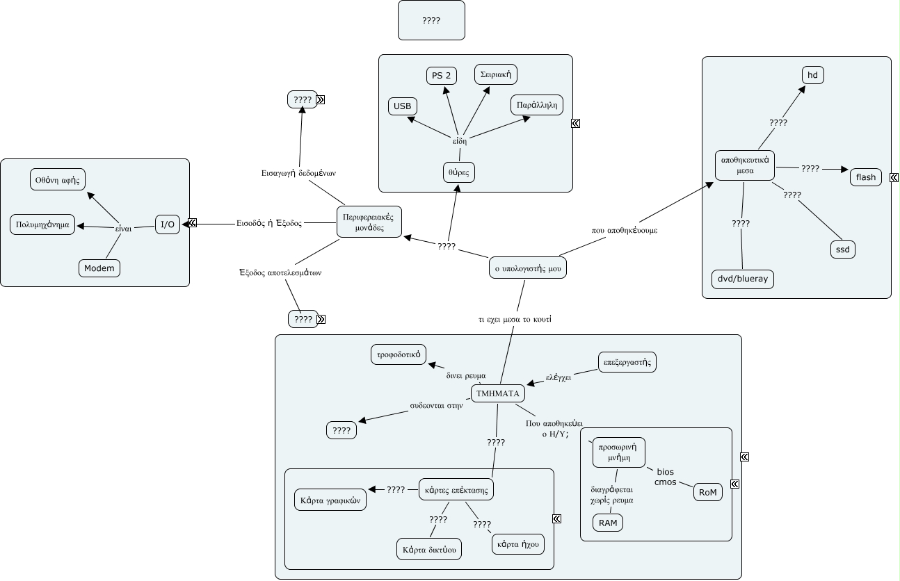 Αυτός ο εννοιολογικός χάρτης, που δημιουργήθηκε με το IHMC Cmap Tools, περιέχει πλήροφορίες που σχετίζονται με: yliko dimitri, θύρες είδη Παράλληλη, ο υπολογιστής μου ???? θύρες, προσωρινή μνήμη διαγράφεται χωρίς ρευμα RAM, ο υπολογιστής μου που αποθηκέυουμε αποθηκευτικά μεσα, κάρτες επέκτασης ???? κάρτα ήχου, Εξόδου είναι Εκτυπωτής, αποθηκευτικά μεσα ???? flash, I/O είναι Πολυμηχάνημα, Εισόδου είναι Ποντίκι, αποθηκευτικά μεσα ???? hd, αποθηκευτικά μεσα ???? ssd, ΤΜΗΜΑΤΑ δινει ρευμα τροφοδοτικό, ο υπολογιστής μου τι εχει μεσα το κουτί ΤΜΗΜΑΤΑ, ΤΜΗΜΑΤΑ ???? κάρτες επέκτασης, προσωρινή μνήμη bios cmos RoM, Περιφερειακές μονάδες Έξοδος αποτελεσμάτων Εξόδου, I/O είναι Modem, θύρες είδη USB, Εισόδου είναι Σαρωτής, θύρες είδη PS 2