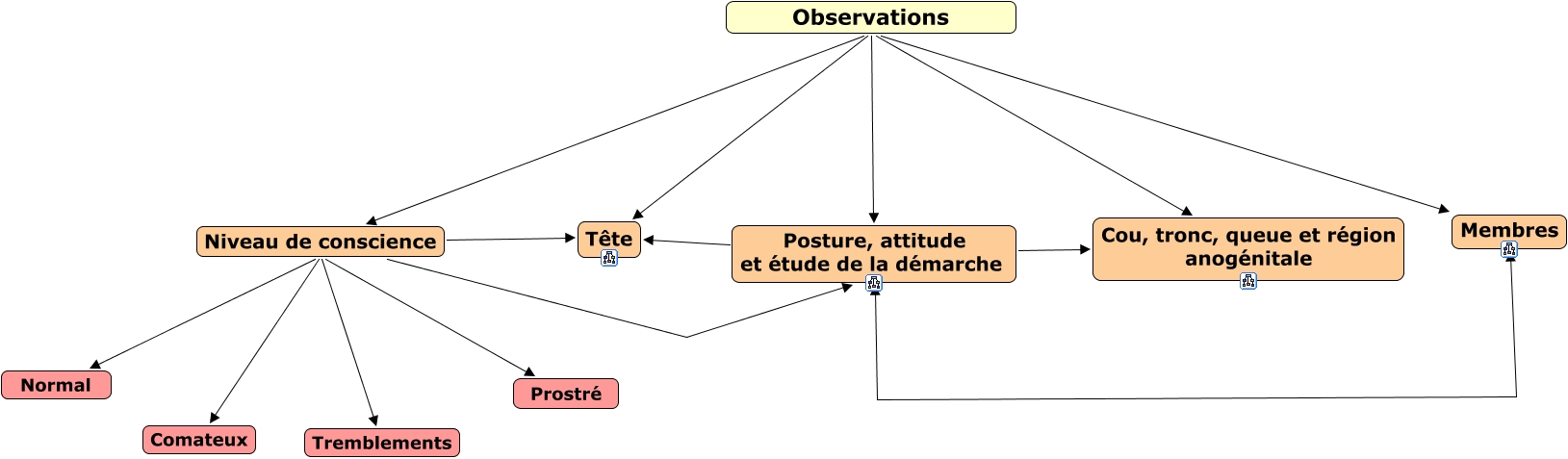 Cette carte de concepts créée avec IHMC CmapTools traite de: Sans titre 2, Observations Niveau de conscience, Observations Tête, Observations Posture, attitude et étude de la démarche, Posture, attitude et étude de la démarche Tête, Posture, attitude et étude de la démarche Membres, Posture, attitude et étude de la démarche Cou, tronc, queue et région anogénitale, Observations Membres, Observations Cou, tronc, queue et région anogénitale, Niveau de conscience Tête, Niveau de conscience Comateux, Niveau de conscience Normal, Niveau de conscience Tremblements, Niveau de conscience Prostré, Niveau de conscience Posture, attitude et étude de la démarche