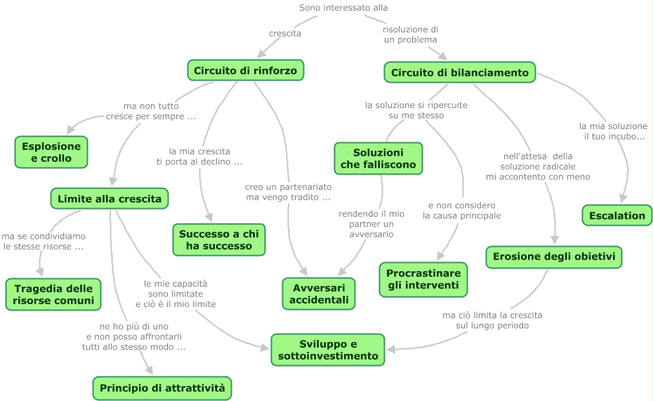 Questa Cmap, creata con IHMC CmapTools, contiene informazioni relative a: Archetipi, Circuito di bilanciamento la soluzione si ripercuite su me stesso Soluzioni che falliscono, Limite alla crescita ne ho più di uno e non posso affrontarli tutti allo stesso modo ... Principio di attrattività, Limite alla crescita le mie capacità sono limitate e ciò è il mio limite Sviluppo e sottoinvestimento, Erosione degli obietivi ma ciò limita la crescita sul lungo periodo Sviluppo e sottoinvestimento, Circuito di bilanciamento la soluzione si ripercuite su me stesso e non considero la causa principale, Sono interessato alla crescita Circuito di rinforzo, Sono interessato alla risoluzione di un problema Circuito di bilanciamento, Circuito di rinforzo la mia crescita ti porta al declino ... Successo a chi ha successo, e non considero la causa principale Procrastinare gli interventi, Circuito di bilanciamento la mia soluzione il tuo incubo... Escalation, Circuito di bilanciamento nell'attesa della soluzione radicale mi accontento con meno Erosione degli obietivi, Limite alla crescita ma se condividiamo le stesse risorse ... Tragedia delle risorse comuni, Circuito di rinforzo creo un partenariato ma vengo tradito ... Avversari accidentali, Circuito di rinforzo ma non tutto cresce per sempre ... Limite alla crescita, Soluzioni che falliscono rendendo il mio partner un avversario Avversari accidentali, Circuito di rinforzo ma non tutto cresce per sempre ... Esplosione e crollo