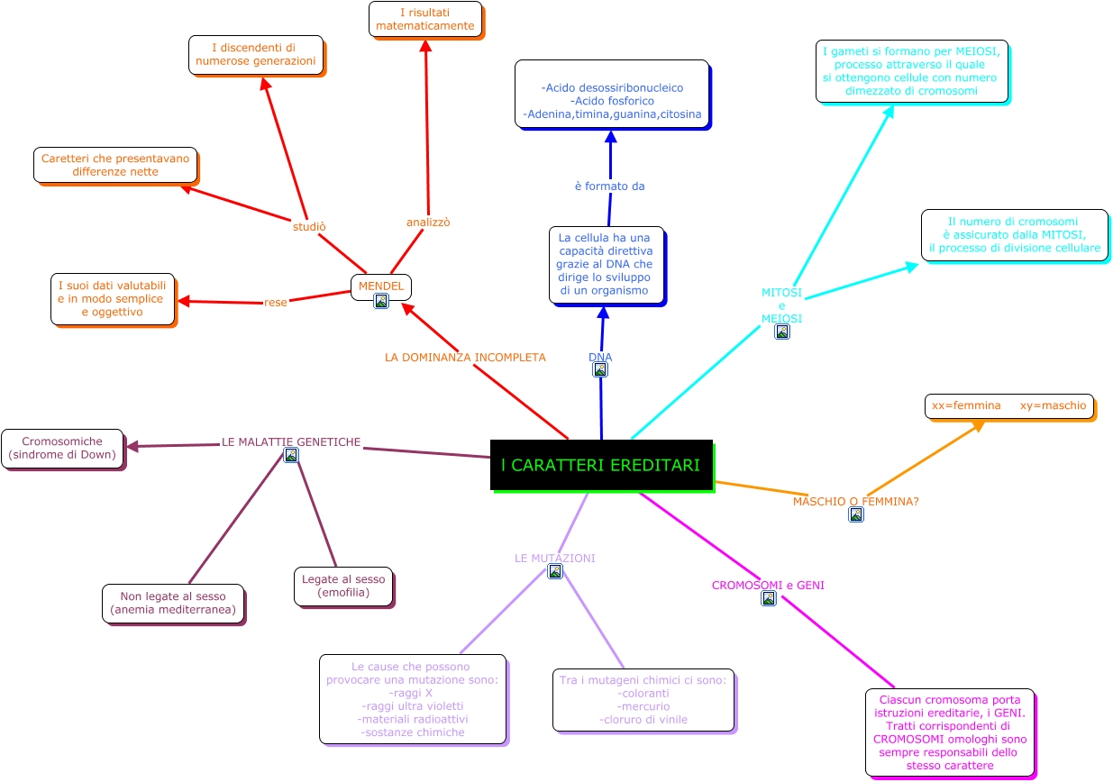 Questa Cmap, creata con IHMC CmapTools, contiene informazioni relative a: MAPPA 1, MENDEL analizzò I risultati matematicamente, l CARATTERI EREDITARI LE MUTAZIONI Le cause che possono provocare una mutazione sono: -raggi X -raggi ultra violetti -materiali radioattivi -sostanze chimiche, MENDEL studiò I discendenti di numerose generazioni, l CARATTERI EREDITARI LE MALATTIE GENETICHE Non legate al sesso (anemia mediterranea), l CARATTERI EREDITARI LA DOMINANZA INCOMPLETA MENDEL, La cellula ha una capacità direttiva grazie al DNA che dirige lo sviluppo di un organismo è formato da -Acido desossiribonucleico -Acido fosforico -Adenina,timina,guanina,citosina, MENDEL rese I suoi dati valutabili e in modo semplice e oggettivo, l CARATTERI EREDITARI MASCHIO O FEMMINA? xx=femmina xy=maschio, MENDEL studiò Caretteri che presentavano differenze nette, l CARATTERI EREDITARI LE MUTAZIONI Tra i mutageni chimici ci sono: -coloranti -mercurio -cloruro di vinile, l CARATTERI EREDITARI CROMOSOMI e GENI Ciascun cromosoma porta istruzioni ereditarie, i GENI. Tratti corrispondenti di CROMOSOMI omologhi sono sempre responsabili dello stesso carattere, l CARATTERI EREDITARI LE MALATTIE GENETICHE Cromosomiche (sindrome di Down), l CARATTERI EREDITARI DNA La cellula ha una capacità direttiva grazie al DNA che dirige lo sviluppo di un organismo, l CARATTERI EREDITARI LE MALATTIE GENETICHE Legate al sesso (emofilia), l CARATTERI EREDITARI MITOSI e MEIOSI Il numero di cromosomi è assicurato dalla MITOSI, il processo di divisione cellulare, l CARATTERI EREDITARI MITOSI e MEIOSI I gameti si formano per MEIOSI, processo attraverso il quale si ottengono cellule con numero dimezzato di cromosomi