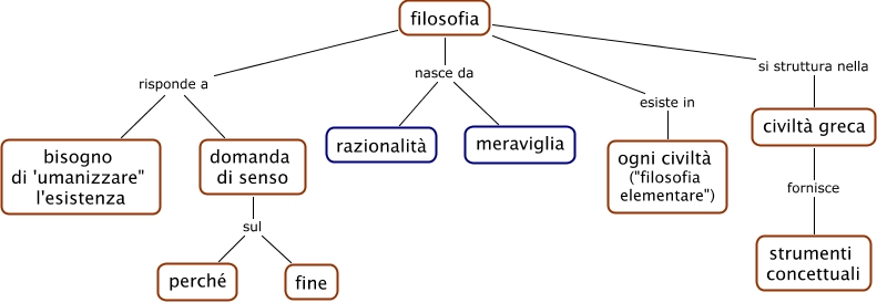 Questa Cmap, creata con IHMC CmapTools, contiene informazioni relative a: 02 Origini della filosofia, filosofia esiste in ogni civiltà ("filosofia elementare"), filosofia risponde a bisogno di 'umanizzare" l'esistenza, filosofia nasce da razionalità, domanda di senso sul fine, domanda di senso sul perché, filosofia risponde a domanda di senso, filosofia nasce da meraviglia, civiltà greca fornisce strumenti concettuali, filosofia si struttura nella civiltà greca