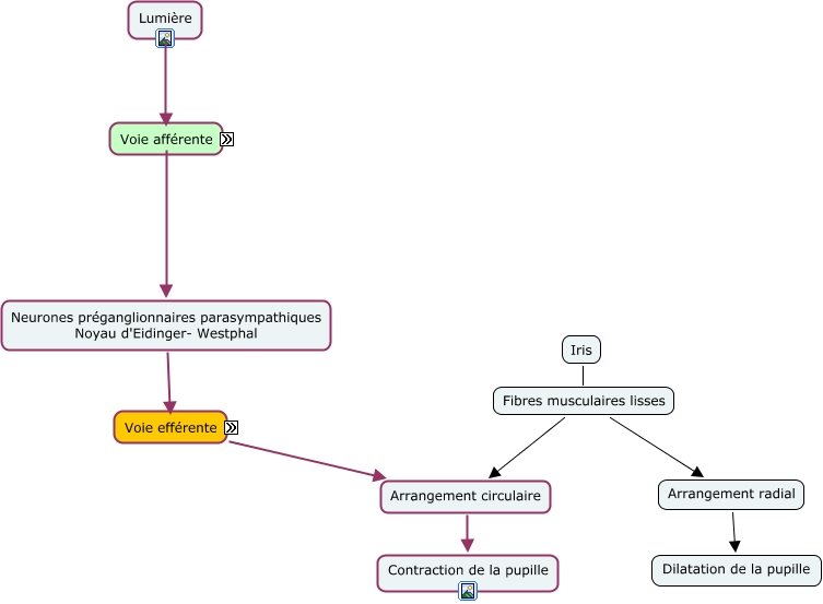 Cette carte de concepts créée avec IHMC CmapTools traite de: refl. photomo, Fibres musculaires lisses Arrangement circulaire, Cellules ganglionnaires Tractus rétino-tectal, Ganglion ciliaire Neurones parasympathiques post-ganglionnaires, Voie efférente Arrangement circulaire, Neurones préganglionnaires parasympathiques Noyau d'Eidinger- Westphal Nerf occulomoteur, Arrangement circulaire Contraction de la pupille, Fibres musculaires lisses Arrangement radial, Nerf occulomoteur Ganglion ciliaire, Tractus rétino-tectal Région prétectale du cerveau, Lumière Cellules ganglionnaires, Fibres musculaires lisses Iris, Région prétectale du cerveau Neurones préganglionnaires parasympathiques Noyau d'Eidinger- Westphal, Arrangement radial Dilatation de la pupille