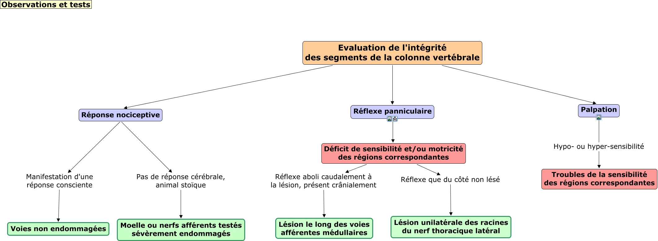 Cette carte de concepts créée avec IHMC CmapTools traite de: Pont, Déficit de sensibilité et/ou motricité des régions correspondantes Réflexe aboli caudalement à la lésion, présent crânialement Lésion le long des voies afférentes médullaires, Evaluation de l'intégrité des segments de la colonne vertébrale Réponse nociceptive, Evaluation de l'intégrité des segments de la colonne vertébrale Réflexe panniculaire, Evaluation de l'intégrité des segments de la colonne vertébrale Palpation, Réflexe panniculaire Déficit de sensibilité et/ou motricité des régions correspondantes, Déficit de sensibilité et/ou motricité des régions correspondantes Réflexe que du côté non lésé Lésion unilatérale des racines du nerf thoracique latéral, Palpation Hypo- ou hyper-sensibilité Troubles de la sensibilité des régions correspondantes, Réponse nociceptive Manifestation d'une réponse consciente Voies non endommagées, Réponse nociceptive Pas de réponse cérébrale, animal stoïque Moelle ou nerfs afférents testés sévèrement endommagés