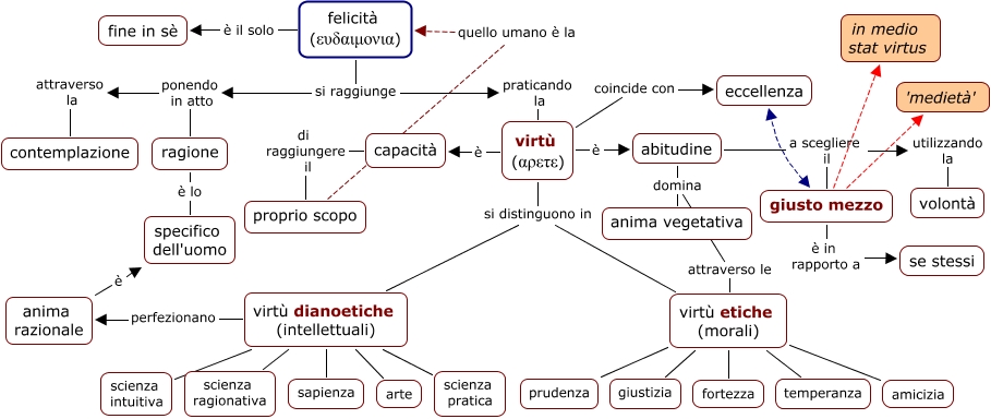 Questa Cmap, creata con IHMC CmapTools, contiene informazioni relative a: 09r Aristotele - Etica - La felicità, giusto mezzo è in rapporto a se stessi, eccellenza giusto mezzo, abitudine domina anima vegetativa, felicità (ευδαιμονια) si raggiunge ponendo in atto attraverso la contemplazione, felicità (ευδαιμονια) è il solo fine in sè, virtù etiche (morali) amicizia, felicità (ευδαιμονια) si raggiunge ponendo in atto ragione, giusto mezzo in medio stat virtus, virtù dianoetiche (intellettuali) sapienza, abitudine domina attraverso le virtù etiche (morali), virtù (αρετε) coincide con eccellenza, virtù dianoetiche (intellettuali) scienza pratica, virtù etiche (morali) temperanza, abitudine a scegliere il utilizzando la volontà, anima razionale è specifico dell'uomo, virtù dianoetiche (intellettuali) scienza ragionativa, virtù (αρετε) si distinguono in virtù etiche (morali), proprio scopo quello umano è la felicità (ευδαιμονια), virtù dianoetiche (intellettuali) scienza intuitiva, virtù dianoetiche (intellettuali) arte