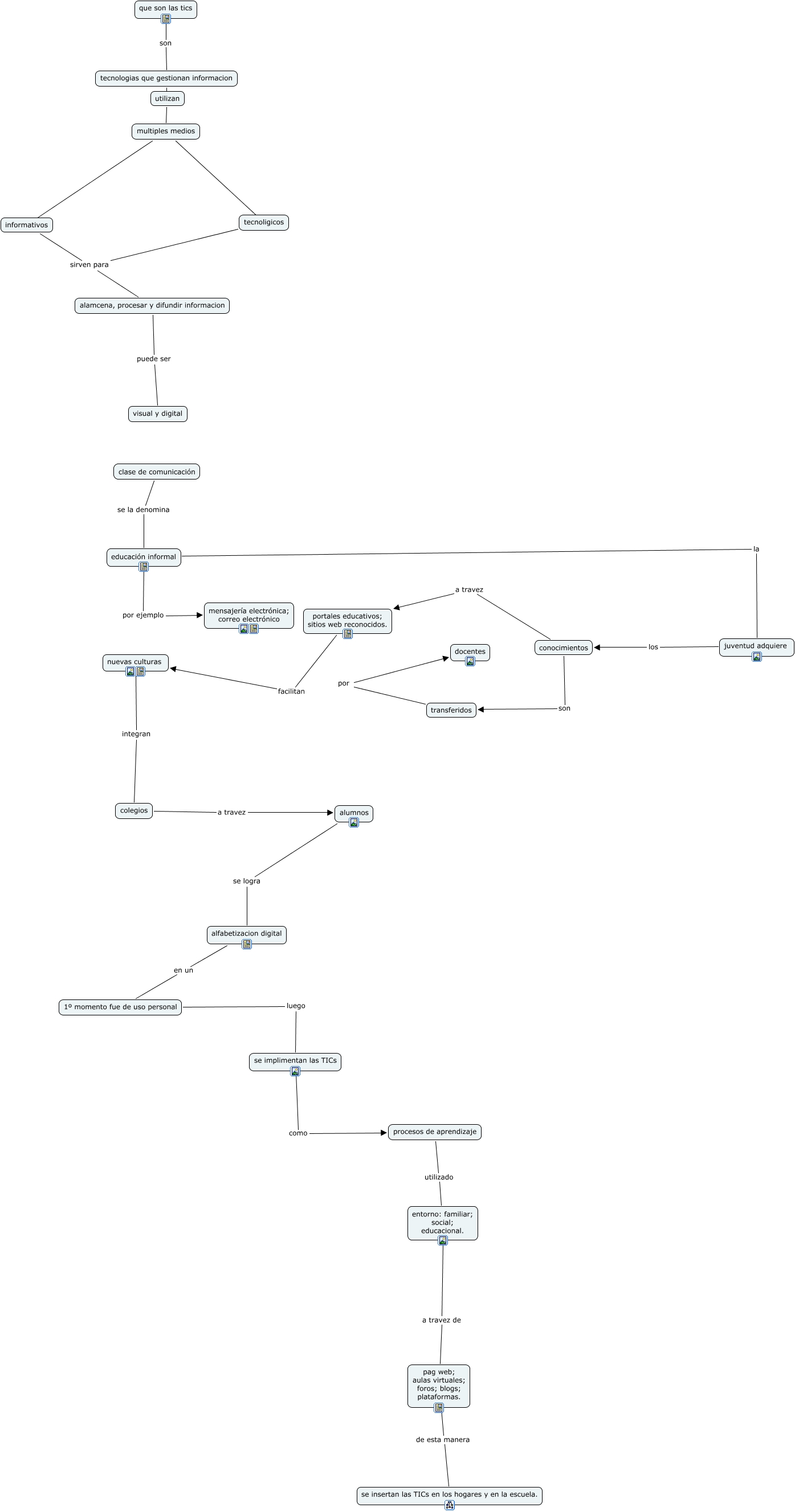Este Cmap, tiene información relacionada con: FRANCISCO cmap tics, pag web; aulas virtuales; foros; blogs; plataformas. de esta manera se insertan las TICs en los hogares y en la escuela., educación informal por ejemplo mensajería electrónica; correo electrónico, alfabetizacion digital en un 1º momento fue de uso personal, multiples medios ???? informativos, alamcena, procesar y difundir informacion puede ser visual y digital, se implimentan las TICs como procesos de aprendizaje, clase de comunicación se la denomina educación informal, tecnoligicos sirven para alamcena, procesar y difundir informacion, juventud adquiere los conocimientos, que son las tics son tecnologias que gestionan informacion, nuevas culturas integran colegios, informativos sirven para alamcena, procesar y difundir informacion, 1º momento fue de uso personal luego se implimentan las TICs, alumnos se logra alfabetizacion digital, conocimientos son transferidos, procesos de aprendizaje utilizado entorno: familiar; social; educacional., multiples medios ???? tecnoligicos, entorno: familiar; social; educacional. a travez de pag web; aulas virtuales; foros; blogs; plataformas., conocimientos a travez portales educativos; sitios web reconocidos., colegios a travez alumnos