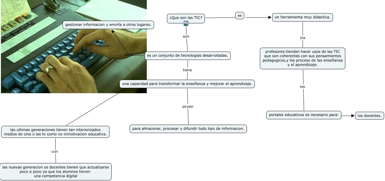 Este Cmap, tiene información relacionada con: q son las tic, una capacidad para transformar la enseñanza y mejorar el aprendizaje. ???? las ultimas generaciones tienen tan interiorizados medios de cine o las tv como no inmotivacion educativa., una capacidad para transformar la enseñanza y mejorar el aprendizaje. sirven para almacenar, procesar y difundir todo tipo de informacion., un herramienta muy didactica. los profesores:tienden hacer usos de las TIC que son coherentes con sus pensamientos pedagogicos,y los proceso de las enseñanza y el aprendizaje., las ultimas generaciones tienen tan interiorizados medios de cine o las tv como no inmotivacion educativa. con las nuevas generacion os docentes tienen que actualizarse poco a poco ya que los alumnos tienen una competencia digital, ¿Que son las TIC? ???? un herramienta muy didactica., ¿Que son las TIC? son es un conjunto de tecnologias desarrolladas., es un conjunto de tecnologias desarrolladas. tiene una capacidad para transformar la enseñanza y mejorar el aprendizaje., es un conjunto de tecnologias desarrolladas. para gestionar informacion y envirla a otros lugares., portales educativos es necesario para: ???? los docentes., profesores:tienden hacer usos de las TIC que son coherentes con sus pensamientos pedagogicos,y los proceso de las enseñanza y el aprendizaje. los portales educativos es necesario para: