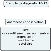 Cette carte de concepts créée avec IHMC CmapTools traite de: dizg 10-12, Anamnèse et observation Test --> sautillement sur un membre proprioceptif placé tactile patellaire