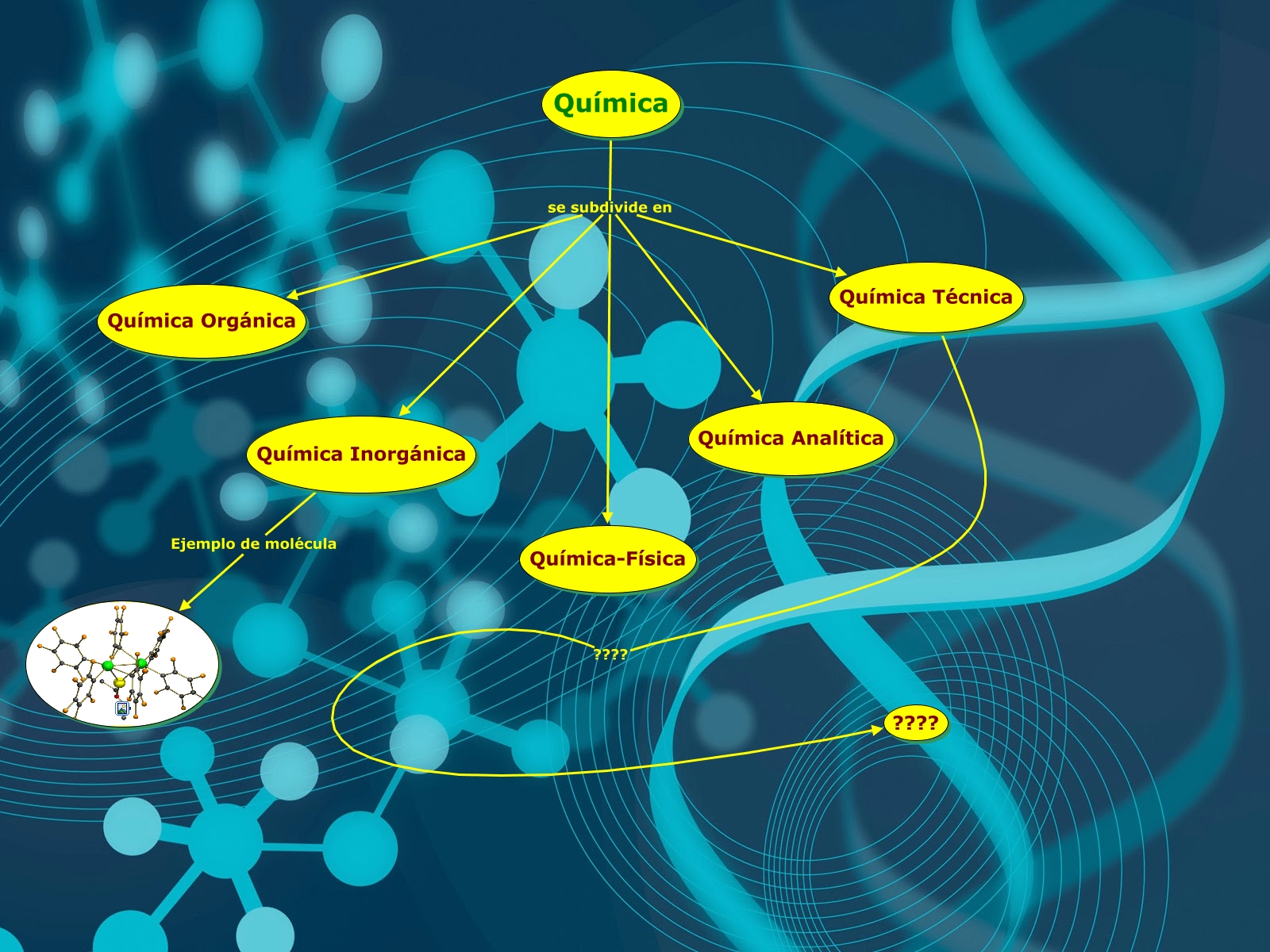 Este Cmap, tiene información relacionada con: Galisteo-quimica, Química se subdivide en Química-Física, Química se subdivide en Química Técnica, Química se subdivide en Química Analítica, Química Técnica ???? ????, Química se subdivide en Química Inorgánica, Química se subdivide en Química Orgánica, Química Inorgánica Ejemplo de molécula
