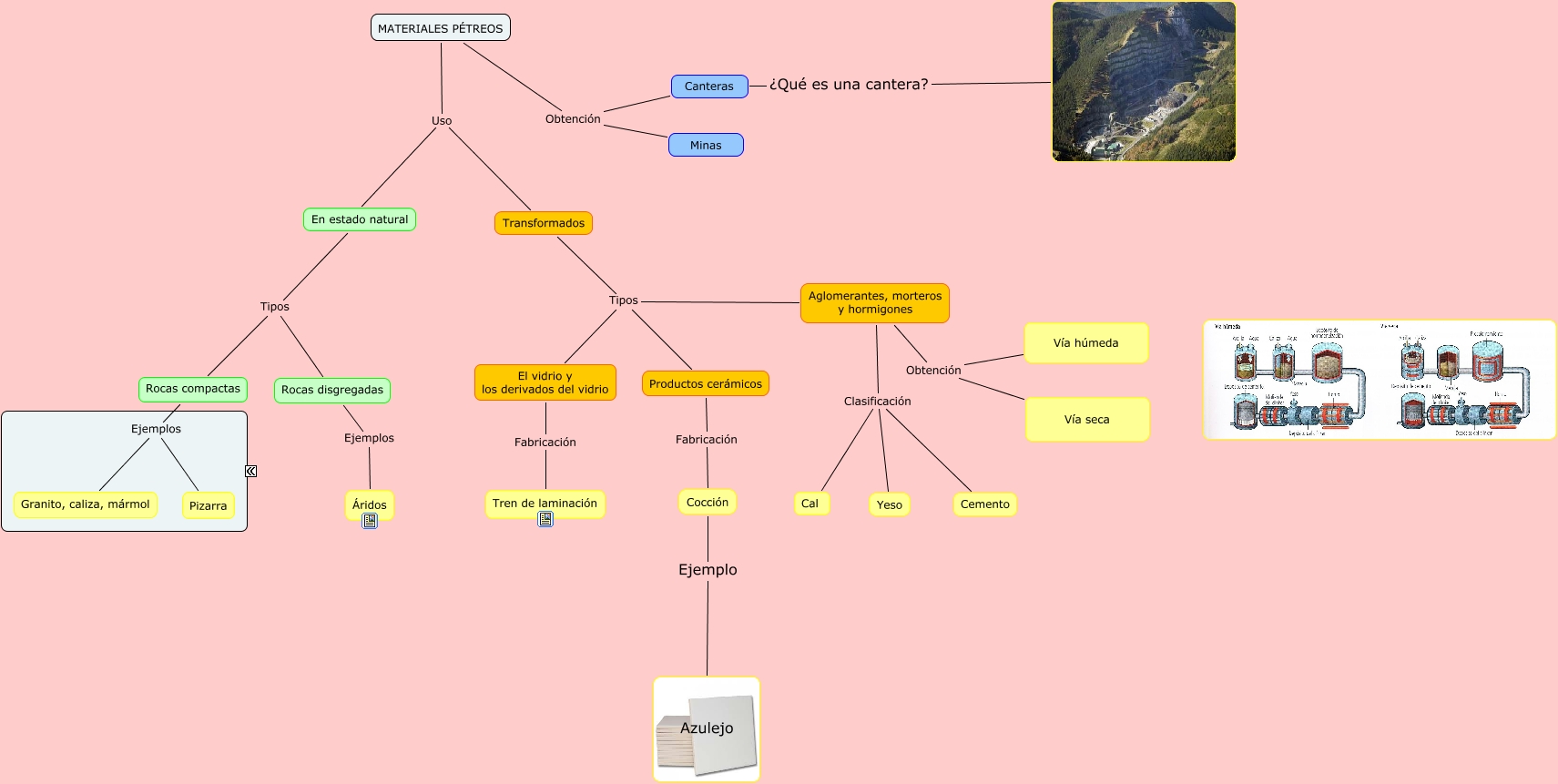 Este Cmap, tiene información relacionada con: Materiales de construcción. Tecnología 3º ESO, Rocas compactas Ejemplos Granito, caliza, mármol, En estado natural Tipos Rocas disgregadas, Rocas compactas Ejemplos Pizarra, Aglomerantes, morteros y hormigones Clasificación Yeso, Aglomerantes, morteros y hormigones Obtención Vía húmeda, Transformados Tipos Aglomerantes, morteros y hormigones, Transformados Tipos Productos cerámicos, Aglomerantes, morteros y hormigones Obtención Vía seca, MATERIALES PÉTREOS Obtención Canteras, MATERIALES PÉTREOS Uso Transformados, Aglomerantes, morteros y hormigones Clasificación Cal, MATERIALES PÉTREOS Uso En estado natural, El vidrio y los derivados del vidrio Fabricación Tren de laminación, En estado natural Tipos Rocas compactas, Cocción Ejemplo Azulejo, Productos cerámicos Fabricación Cocción, Canteras ¿Qué es una cantera?, Aglomerantes, morteros y hormigones Clasificación Cemento, Rocas disgregadas Ejemplos Áridos, MATERIALES PÉTREOS Obtención Minas