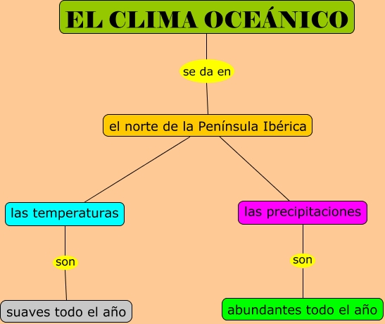 Este Cmap, tiene información relacionada con: El clima oceánico, el norte de la Península Ibérica las temperaturas, las precipitaciones son abundantes todo el año, el norte de la Península Ibérica las precipitaciones, las temperaturas son suaves todo el año, EL CLIMA OCEÁNICO se da en el norte de la Península Ibérica