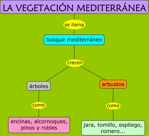 Este Cmap, tiene información relacionada con: La vegetación mediterránea, arbustos como jara, tomillo, espliego, romero..., árboles como encinas, alcornoques, pinos y robles, bosque mediterráneo crecen árboles, LA VEGETACIÓN MEDITERRÁNEA se llama bosque mediterráneo, bosque mediterráneo crecen arbustos