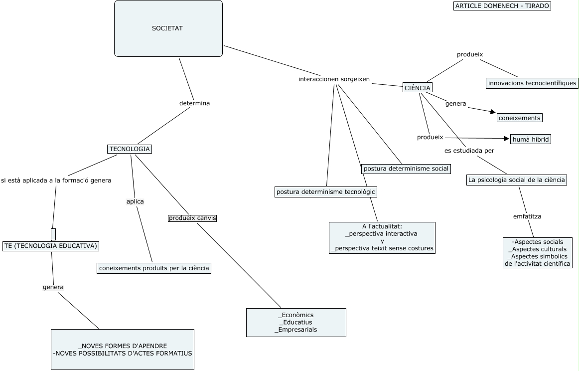 Este Cmap, tiene información relacionada con: mapa1, TECNOLOGIA si està aplicada a la formació genera TE (TECNOLOGIA EDUCATIVA), SOCIETAT interaccionen sorgeixen postura determinisme social, SOCIETAT determina TECNOLOGIA, CIÈNCIA produeix humà híbrid, ???? aplica coneixements produïts per la ciència, La psicologia social de la ciència emfatitza -Aspectes socials _Aspectes culturals _Aspectes simbolics de l'activitat científica, SOCIETAT interaccionen sorgeixen ci, A l'actualitat: _perspectiva interactiva y _perspectiva teixit sense costures interaccionen sorgeixen postura determinisme tecnològic, TE (TECNOLOGIA EDUCATIVA) genera _NOVES FORMES D'APENDRE -NOVES POSSIBILITATS D'ACTES FORMATIUS, SOCIETAT interaccionen sorgeixen postura determinisme tecnològic, CIÈNCIA produeix innovacions tecnocientífiques, ci es estudiada per La psicologia social de la ciència, A l'actualitat: _perspectiva interactiva y _perspectiva teixit sense costures interaccionen sorgeixen ci, ???? produeix canvis _Econòmics _Educatius _Empresarials, A l'actualitat: _perspectiva interactiva y _perspectiva teixit sense costures interaccionen sorgeixen postura determinisme social, ci genera coneixements