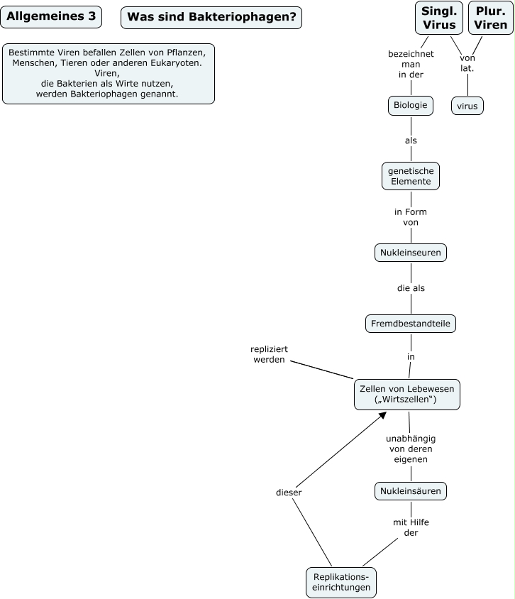 Dieses mit IHMC CmapTools erstellte CMap hat Informationen bezüglich: Allgemeines 3 Was sind Bakteriophagen, Nukleinsäuren mit Hilfe der Replikations- einrichtungen, Fremdbestandteile in Zellen von Lebewesen („Wirtszellen“), Singl. Virus von lat. virus, Nukleinseuren die als Fremdbestandteile, genetische Elemente in Form von Nukleinseuren, Singl. Virus bezeichnet man in der Biologie, Replikations- einrichtungen dieser Zellen von Lebewesen („Wirtszellen“), Biologie als genetische Elemente, Plur. Viren von lat. virus, Zellen von Lebewesen („Wirtszellen“) unabhängig von deren eigenen Nukleinsäuren